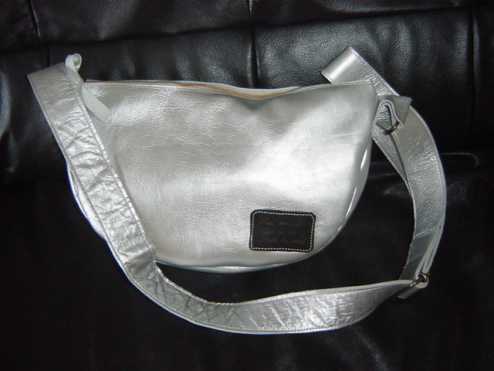 かなり軽いのでメッセンジャーバック風にショルダー紐を短くして背負ってもかわいいです。黒革のタグにはフランス語のことわざがかいています。(温故知新の意)ギラギラしたシルバーではないので意外とあわせやすく普段使いにおしゃれです。(*^_^*)