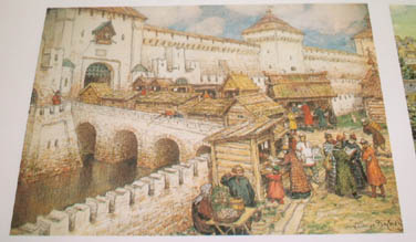 当時は赤の広場とクレムリンの間に川が流れてまして、橋の上に本や木版画を売る露店が並んでたのかな。