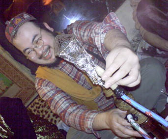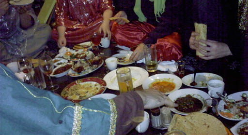 みんな絨毯の上に座り、テーブルではなく板に料理が並べられるわけですよ。
