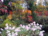 紅葉があちこち見られ、秋の菊がそこかしこ、昔の街道に面しています