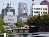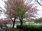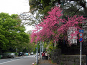 お堀端に桜が、まだ残っていました。近代美術館前にも、1本ありました。