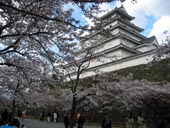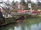 2、鶴ヶ城の桜もついでに寄りました。日当たりの悪いお堀はまだ3分咲き。