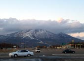 3、夕方残雪の磐梯山が見えました。夜、三春に着きました。