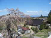 米沢の千歳桜は、老木ながら美しい。糸桜は、蕾みでした。お土産屋さんで桜餅を買う。