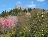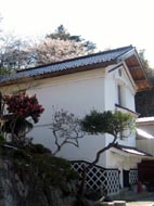 7、ちょっぴり桜と高い蔵が、青空に映えていました。夫婦桜というのもあったりして…。