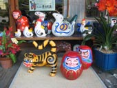 土人形を作っている工房が何軒か並んでいます。