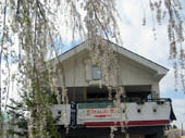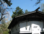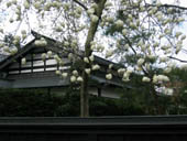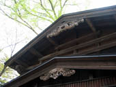 屋根の装飾も手が込んでいます。一本のこぶしが青い空に映えて、美しかったです。