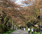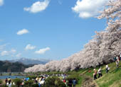 桧木内川堤には、2キロも続くソメイヨシノの並木があります。