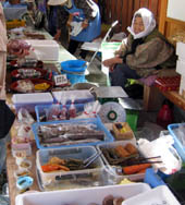 農家のおばさんの手作りのお惣菜やお漬物。カミナリ玉子≠ニいう卵焼き寒天は最高でした。
