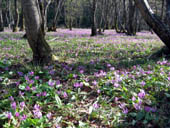 奥に入ったところは、カタクリの群生でした。イワナの丸焼きもあります。