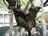 見ごろは4,5日遅かったです。裁判署の入り口に石割桜がありました。観光バスも止まりました。