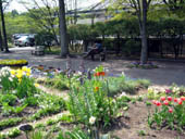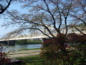 お花見の地元の皆さんに混じって、河原でお弁当を食べました。