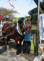 予想通りにほとんど花びらなしの桜並木を歩いてみました。イベントの馬車は、やってました。