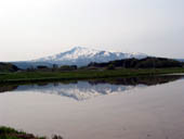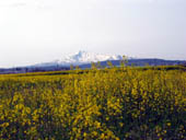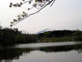 菜の花畑、水田、そして池に映る逆さ鳥海山、残雪の頂きがきれいですね。