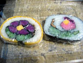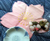 15、おまけです。桜の敷物にさくら餅は花の形になっています。