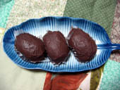仙台の三全のずんだ饅頭です。一口サイズですね。山形、仙台には、ずんだ餡が多いですね。 |