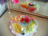 結婚式の前日、ウエルカムフルーツのおすそ分けです。柑橘系が欲しくなります。 |