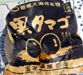 39、箱根の黒卵のおみやげです。6個で1コインでした。その場で食べたのが、美味しかったです。 |