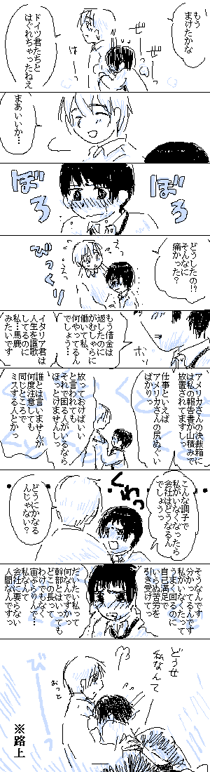 (…イタリア君、邪魔)イタちゃん日本に引っ付いたら逆効果逆効果!(汗)