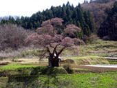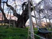 米沢の千歳桜は、老木ながら美しい。糸桜は、蕾みでした。お土産屋さんで桜餅を買う。
