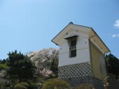 7、ちょっぴり桜と高い蔵が、青空に映えていました。夫婦桜というのもあったりして…。