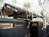 黒塀と桜のピンクが、マッチしていい感じです。