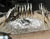 奥に入ったところは、カタクリの群生でした。イワナの丸焼きもあります。