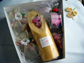 おめでたい結婚式の引き出物です。バームクーヘンと、クッキーの詰め合わせでした。 |