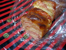 私もたまには、苺を練りこんである、甘いパンをおみやげしてみました。