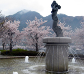 | 9、新潟の信濃川の河口の少し葉桜になってしまったお入学サクラです。 |