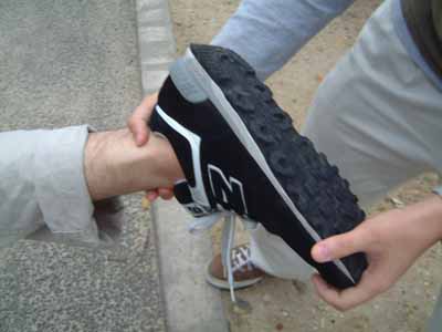 右手を足首甲に移して内側からひねります。