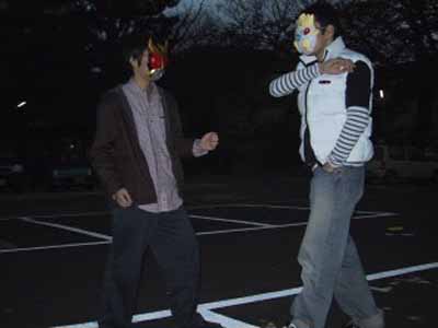 クロスボンバーを成功させるつもりでラリアートを打ちこみます。